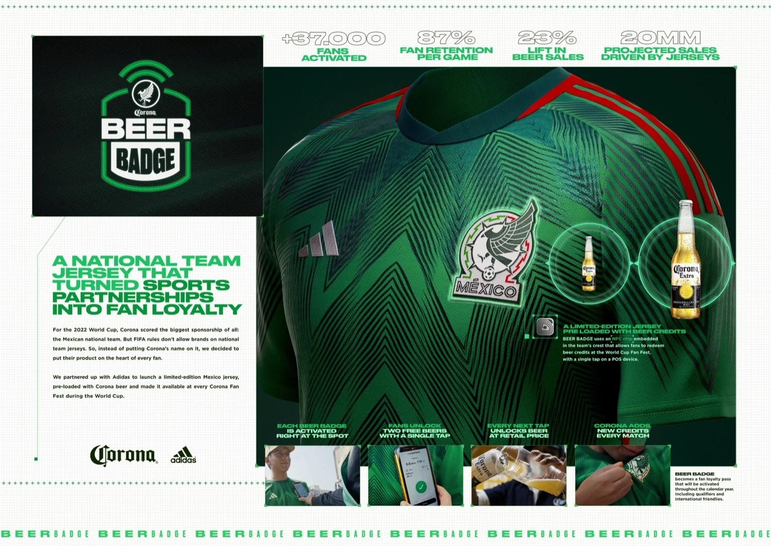 Beer Badge Case Study 24 Apr Written By Dani Comar Forget QR codes. Order with your team’s jersey. View fullsize experiencecreative commercecreative solutionmobilesponsorshipoutdoorvmlmexicolatinacoronabeerbeverages (alcoholic)sportsloyaltyfmcgaward-winningtechnologyemotion Dani Comar Creative Consultant and Workshop Facilitator http://activationideas.com