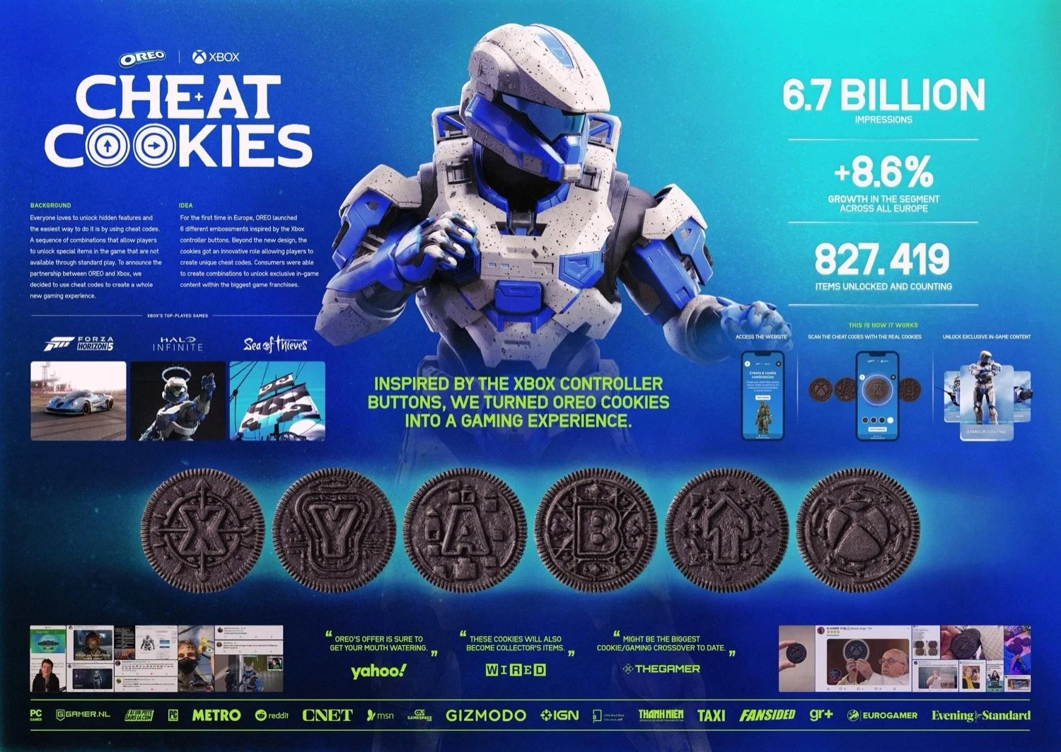 Cheat Cookies Case Study 29 Feb Written By Dani Comar Another great use of product to drive action. View fullsize promogamesgamificationsocial mediagamingsaatchi & saatchiusanorth americaoreomondelezxboxmicrosoftbrand utilityco-brandingcollaborationaward-winningmobilecannes lions 2023 Dani Comar Creative Consultant and Workshop Facilitator http://activationideas.com