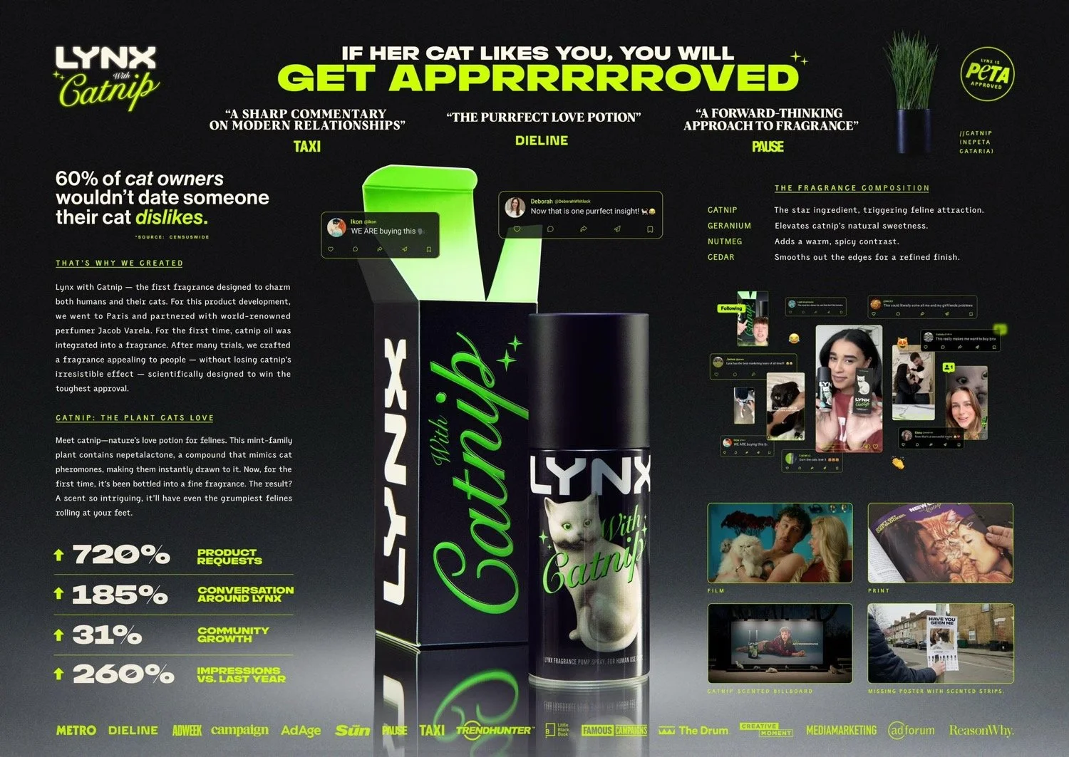 Lynx with Catnip Case Study 17 Dec Written By Dani Comar A new torture-test for deodorants unlocked. View fullsize Not just product innovation but also a sampling exercise. productdesignsamplinginnovationintegratedstuntlola mullenlowespaineuropeunileveraxelynxdeodorantfmcgfunreframingaward-winningcannes lions 2025 Dani Comar Creative Consultant and Workshop Facilitator http://www.danicomar.com