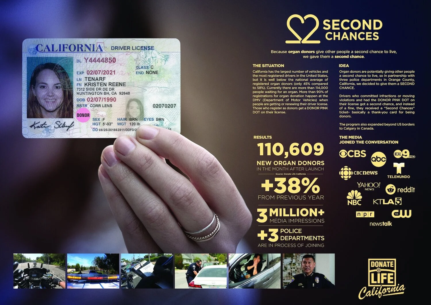 Second Chances Case Study 29 Apr Written By Dani Comar If you’re an organ donor, you get a second chance for paying it forward. View fullsize behaviourshortcutsexperienceincentivesstuntexperientialsamplingaward-winningcasanovamccannusanorth americadonate life californiaorgan donationpublic healthpublic awareness Dani Comar Creative Consultant and Workshop Facilitator http://activationideas.com