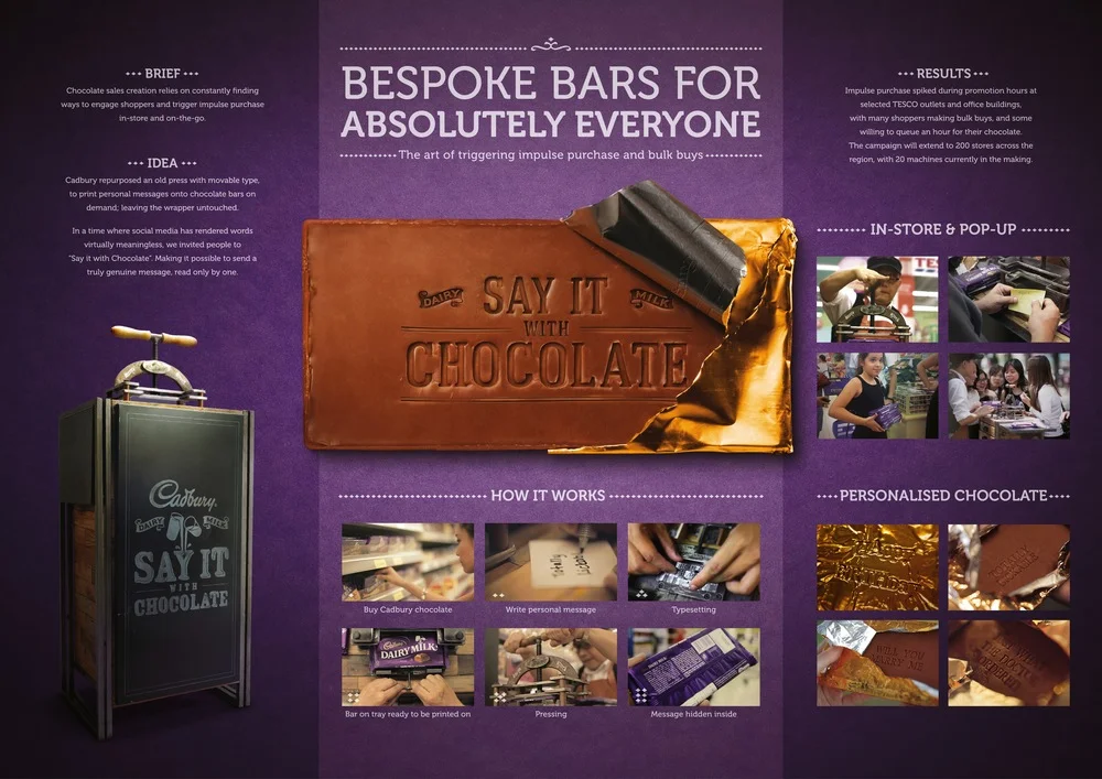 Last week Geometry Malaysia’s campaign for Cadbury ‘Say it with Chocolate’ collected two Silver Asia Effie Awards. A sweet victory that comes on top of 2 other Silver and a Bronze awards at Adfest, a Bronze at Spikes and a whooping Gold, Silver and 6 Bronze awards at the Kancil, the biggest creative shows in the region and in Malaysia respectively.