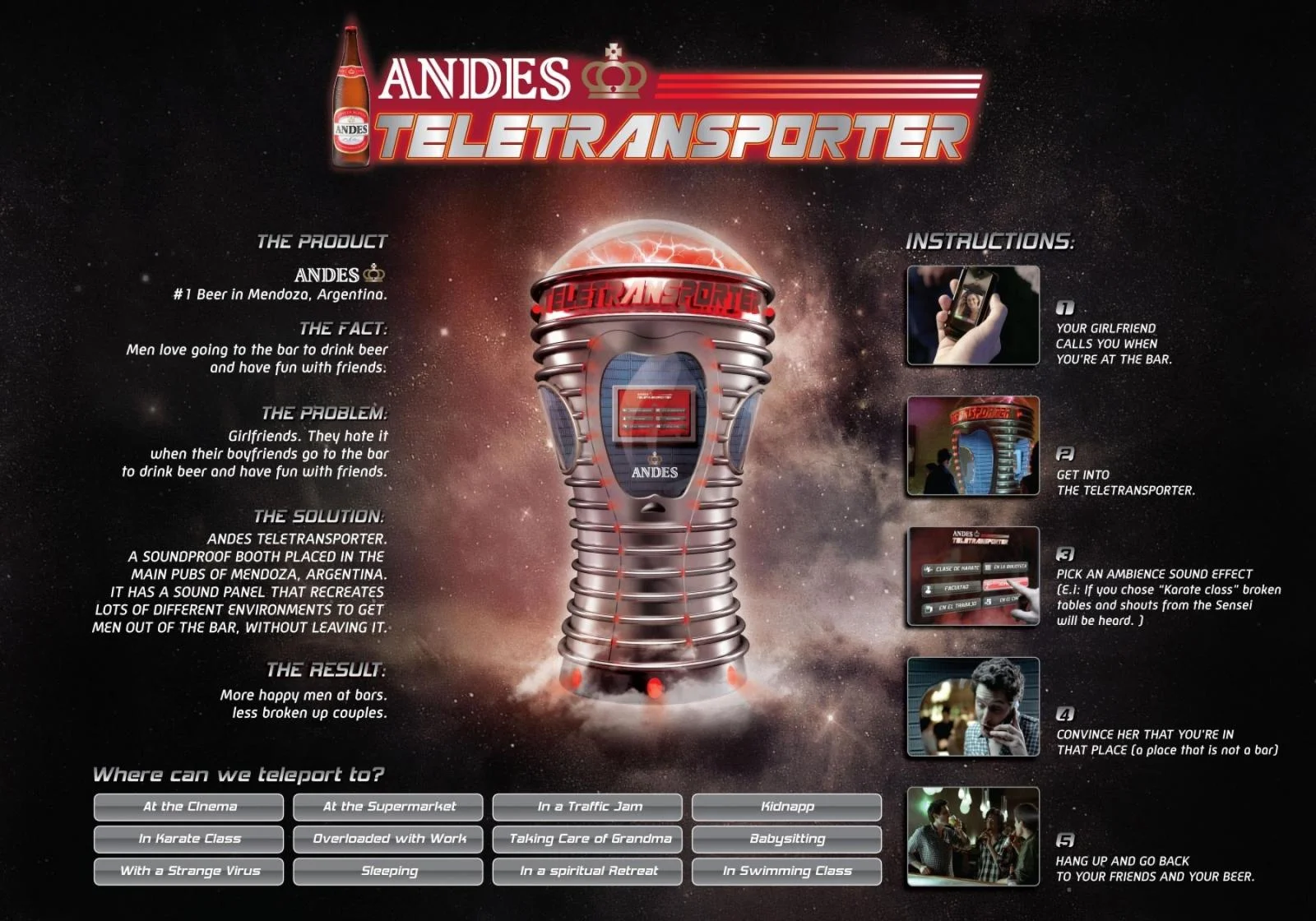 Andes Beer wanted to help their core audience enjoy a night out without their partners. So they created the perfect alibi machine. An iconic idea.
