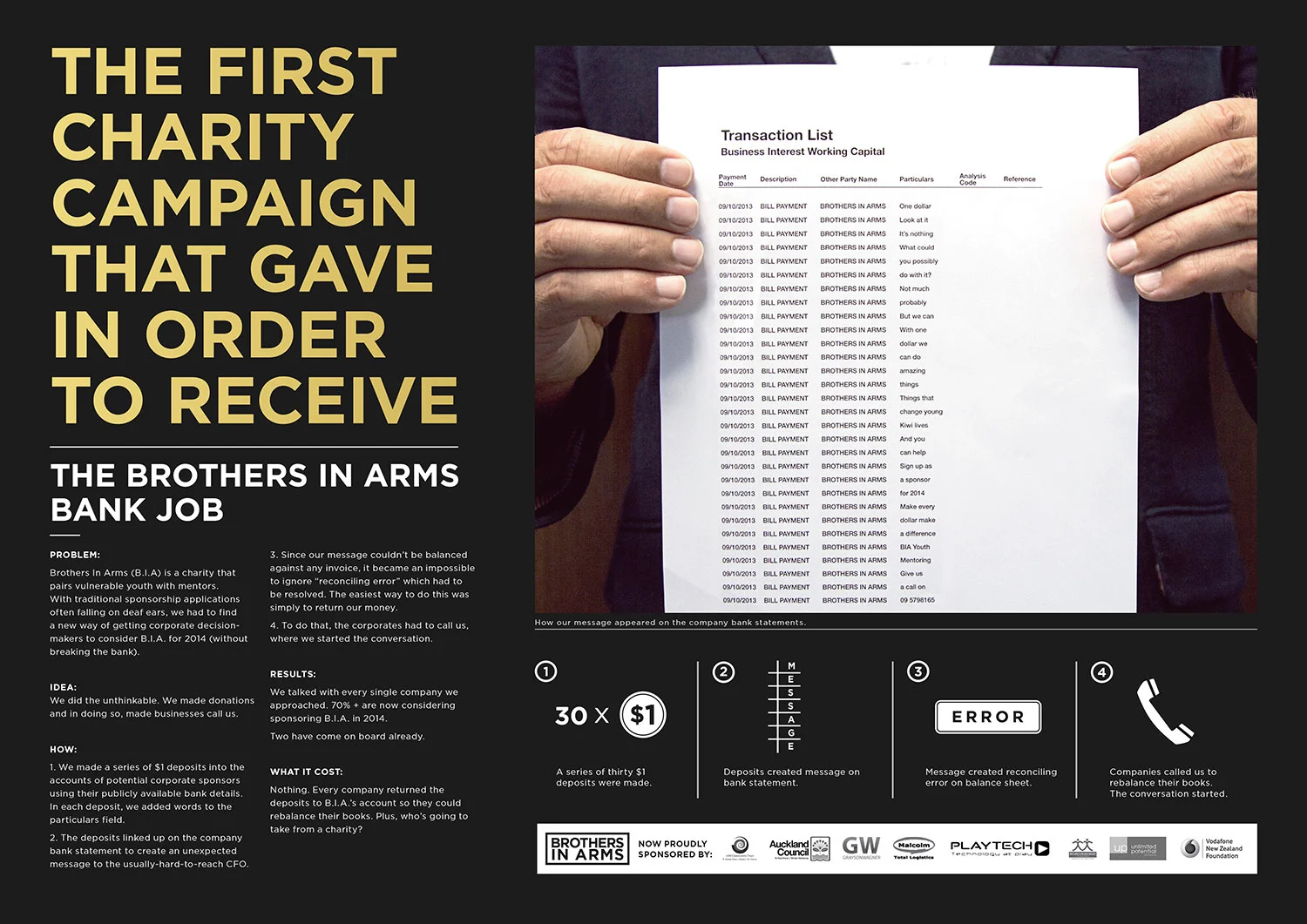 Very ballsy way of talking to the Finance Department of large corporations. Instead of asking for money you give it away to get their attention, as it creates an unavoidable accounting problem.