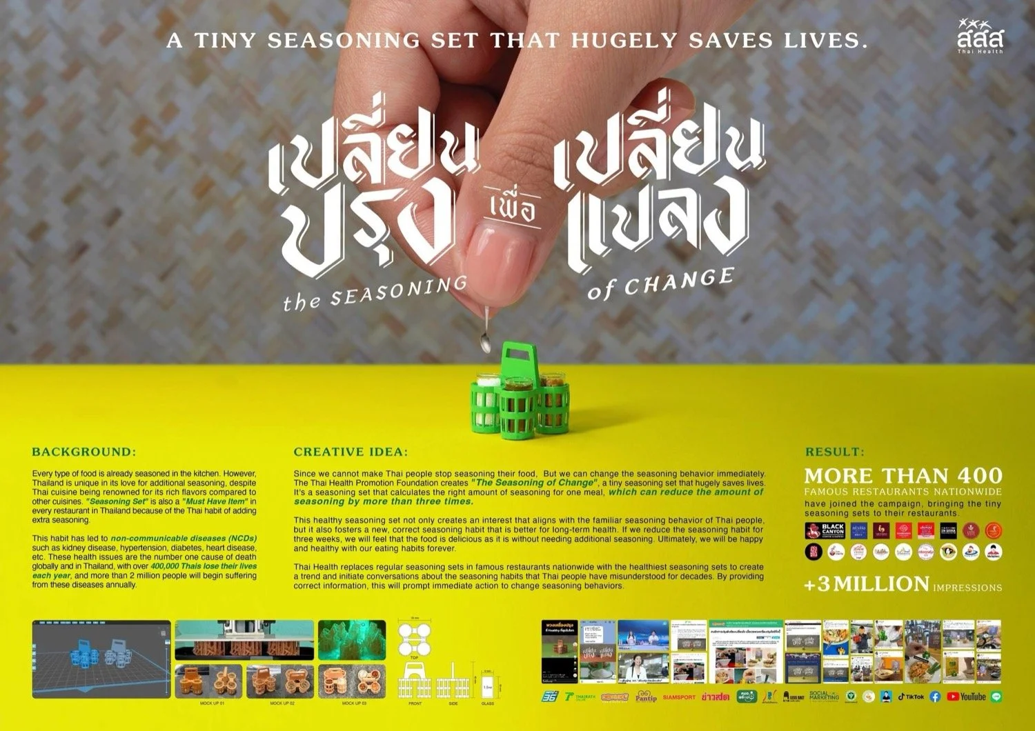 The Seasoning of Change Case Study 30 Apr Written By Dani Comar Reminds me of Pril’s One-Drop-Bottle. Nonetheless, it’s a great idea to influence behaviour. View fullsize behaviourexperiencehorecatrade programmedesignshortcutsdentsu onedentsuthailandasiasocietyproductthai health foundationpublic healthpublic awarenessaward-winning Dani Comar Creative Consultant and Workshop Facilitator http://activationideas.com