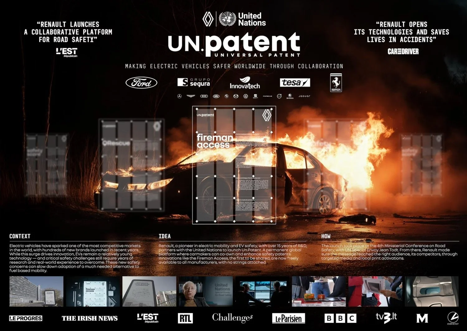 UN.patent Case Study 6 Feb Written By Dani Comar Renault made 40 years of crash test data public domain to save lives, not sell cars. View fullsize innovationpublic relationsbrand utilitypurposepublicis conseilfranceEuroperenaultcarautomotiveelectric vehiclesaward-winningcollaborationroad safety Dani Comar Creative Consultant and Workshop Facilitator http://www.danicomar.com